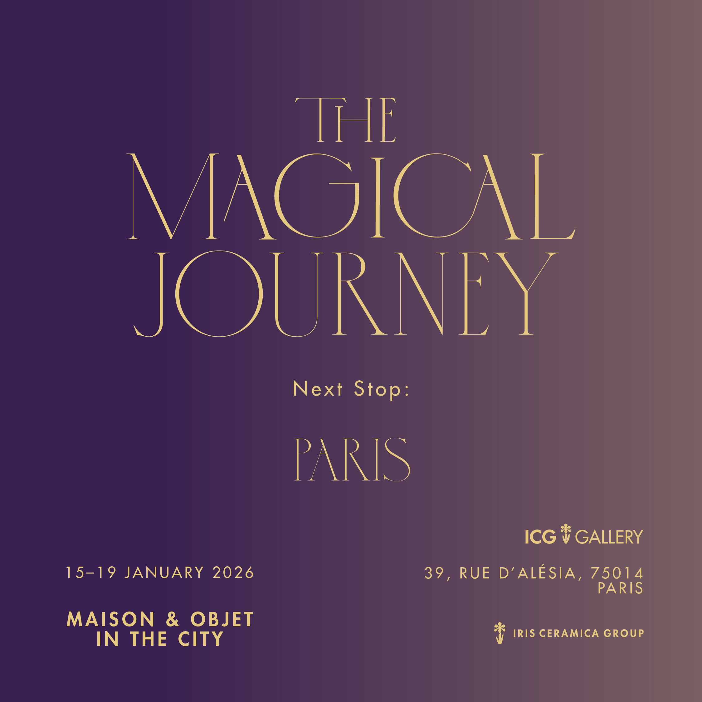 From 14 to 19 January, the Iris Ceramica Group concept The Magical Journey comes to Maison&Objet 2026 – In the city, the Paris fair for the design and furnishing world, with international excellences on display not only at the fair but in showrooms across the city. This year’s theme, “Past reveals future”, presents design as a bearer of memories, stories and traditions and, at the same time, an expression of responsible innovation.